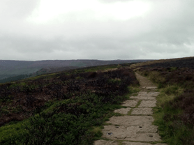The start is very daunting; steep and difficult underfoot, rising to around 400m. It starts on the road, narrow, tricky and steep up through Fremington. As it reaches houses there is the choice of a steep off road path or stay on the road. I stayed on the road, which turned out to be the better choice as it was smoother going and not as steep. The paths meet at a bridleway. This was the way I returned. Stay on the road as it continues uphill and through Intake Wood. As I walked up this part I was passed by a cyclist and then a car. The car stopped at a house further up the hill, just as the smooth road stops and the rugged, stony path begins. It made me think about how they managed in depths of winter, trying to get up here when the road is covered in snow, or maybe the people there at the moment were using it as a holiday home. At times there was the opportunity to walk on the grass, this came as a big relief from the loose stones and holes in the path.