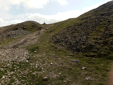 Through the gate it is a left turn, following the wall with fells and moors all around, only sheep for company. However, on the other side of the wall there were some groups of walkers making their way towards the hill I had just climbed. Along this path, a walk of around a mile, with spectacular scenery all around, until breaking off left through a gate towards the spoil heaps left from the old lead mines. It is thought that at one time this area was producing 10% of the country’s lead. The history of lead mining in this area can be traced back to the 2nd century BC and reached its peak during the 18th and 19th centuries.