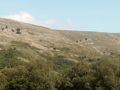 It was also the end of the first half of the walk and where the change in landscape started. The first half was high level fell and moorland, with spectacular views across them and into the valleys. The second half was to be low level along the valley following Arkle Beck. Views would be mainly of the fields, over and back up to Fremington Edge, looking at the way I had walked. It was surprising how high it looked from down in the valley bottom. I was able to pick out landmarks from where I had been walking earlier. I also got a different perspective of the spoil heaps and how they had altered the landscape.